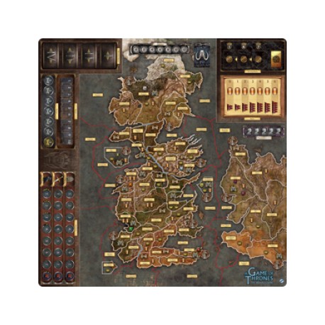 Measuring 3? by 3?, the Mother of Dragons Deluxe Gamemat displays the entirety of the Seven Kingdoms in all their glory, along with the western coast of Essos introduced in Mother of Dragons. From the harbor of Volantis to the snowy wastes of Castle Black, the world of A Song of Ice and Fire is lovingly rendered on this premium, slip-resistant gamemat. This deluxe gamemat is fully compatible with the Mother of Dragons expansion, seamlessly incorporating the continent of Essos, the dragon strength track, the Iron Bank of Braavos, House Arryn?s stronghold in the Eyrie, the fourth Westeros deck, and additions to the influence tracks?all printed onto a single thoughtfully arranged gamemat.