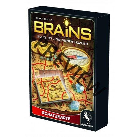 Wie der erste Teil der Brains-Reihe, Japanischer Garten, stellt auch Brains - Schatzkarte die Spieler vor spannende Logikrätsel: Es wird vorgegeben, welche Bedingungen ein vollendeter Plan erfüllen muss, aber welche Wegplättchen dafür benötigt werden und wie sie ausgelegt werden müssen, muss der Spieler alleine herausfinden. In jeweils 50 kniffligen Denk-Puzzles gilt es daher, die Weg-Plättchen so auf den Knobelvorlagen auszulegen, dass alle Rahmenbedingungen erfüllt werden. Aber was so leicht klingt, bringt selbst helle Köpfe zum Qualmen. Selten lagen einfach und verzwickt so nah beisammen wie in Brains. Schnell verstandene Regeln und die zunehmende Schwierigkeit wissen Knobelfreunde zu fesseln. Also Vorsicht: Suchtgefahr!| Sprache | Deutsch Englisch |