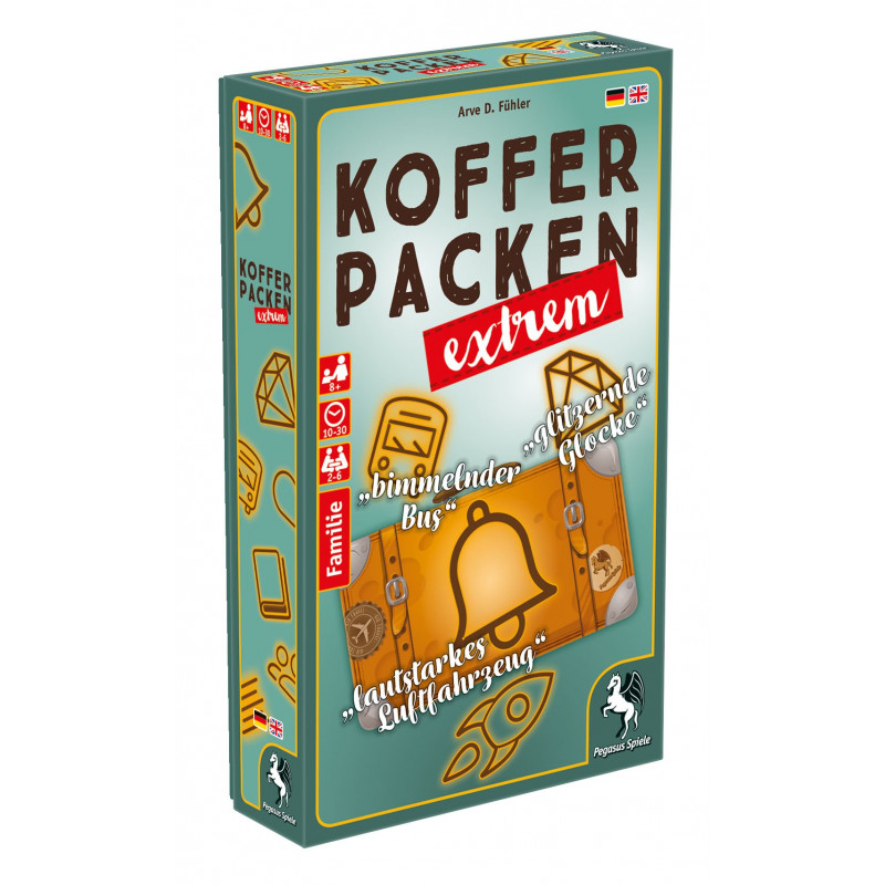 Ich packe meinen Koffer und nehme mit…geniale Gegenstände, witzige Wortspiele - genau dieses Spiel! Der Klassiker „Ich packe meinen Koffer“ mit neuem Twist: Wer erfindet die kreativsten Wortschöpfungen und nutzt dabei die punkteträchtigsten Buchstaben? Aber nach wie vor gilt: Nicht vergessen, was die Mitspieler in den Koffer gepackt haben. Kreativ und konzentriert - wer diese Eigenschaft vereint, wird zum Champion in diesem Klassiker!| Sprache | Deutsch Englisch |