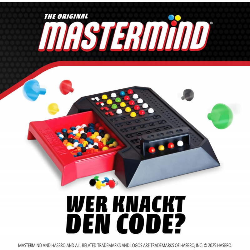 <ul class="a-unordered-list a-vertical a-spacing-mini" style="margin:0px 0px 0px 18px;color:#0f1111;padding:0px;font-family:'Amazon Ember', Arial, sans-serif;font-size:14px;font-style:normal;font-weight:400;letter-spacing:normal;text-indent:0px;text-transform:none;word-spacing:0px;white-space:normal;background-color:#ffffff;"> <li class="a-spacing-mini" style="list-style:disc;margin:0px;"><span class="a-list-item" style="color:#0f1111;">Die Wiederkehr eines klassischen Brettspiels: Mastermind ist zurück mit dieser modernen Neuausgabe. Holen Sie sich dieses klassische 2-Spieler-Brettspiel ins Haus und fordern Sie die ganze Familie oder Ihre Freundesgruppe heraus. Werden Sie das Mastermind der Familie oder Ihrer Freundesgruppe sein?</span></li> <li class="a-spacing-mini" style="list-style:disc;margin:0px;"><span class="a-list-item" style="color:#0f1111;">Strengen Sie Ihr Gehirn an: Können Sie in diesem Brettspiel den Code Ihrer Gegner schneller knacken als Ihr Gegner Ihren Code? Erraten Sie so schnell wie möglich die gewählten Farben und Positionen der gegnerischen Stifte und gewinnen Sie.</span></li> <li class="a-spacing-mini" style="list-style:disc;margin:0px;"><span class="a-list-item" style="color:#0f1111;">Wer Knackt den Code: Mastermind ist ein Familienspiel, das für alle ab 8 Jahren geeignet ist. Da das Spiel einfach zu erlernen ist, kann jeder es spielen. Und weil kein Spiel dem anderen gleicht, ist der Verlauf jeder Runde anders.</span></li> <li class="a-spacing-mini" style="list-style:disc;margin:0px;"><span class="a-list-item" style="color:#0f1111;">Bist du der Meister des Denkspiels: Je länger dein Gegner bei diesem Brettspiel die Antwort nicht errät, desto günstiger ist es für dein Endergebnis. Geben Sie Ihrem Gegner bei diesem Brettspiel also nur die obligatorischen Informationen und wer weiß, vielleicht gewinnen Sie ja!</span></li> <li class="a-spacing-mini" style="list-style:disc;margin:0px;"><span class="a-list-item" style="color:#0f1111;">Inhalt: Die Verpackung von Mastermind Classic enthält die folgenden Teile. Das Spielbrett mit einem eingebauten Aufbewahrungsfach für die Stifte. 108 Stifte in 6 verschiedenen Farben und 30 rote und weiße Schlüsselstifte.</span></li> </ul>