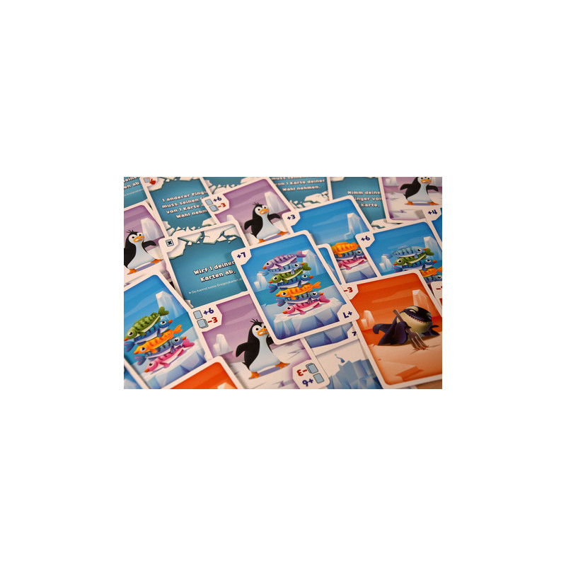 Aber aufgepasst: Nicht jede Karte bringt Punkte. Manche Karten zeigen nämlich keine leckeren Fische, sondern gefährliche Pinguin-Räuber – die kosten Punkte!