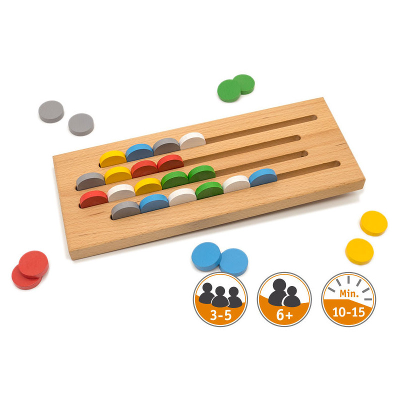 25 bunte und 4 weiße Holzscheiben (je 5 pro Spieler und Blockaden)