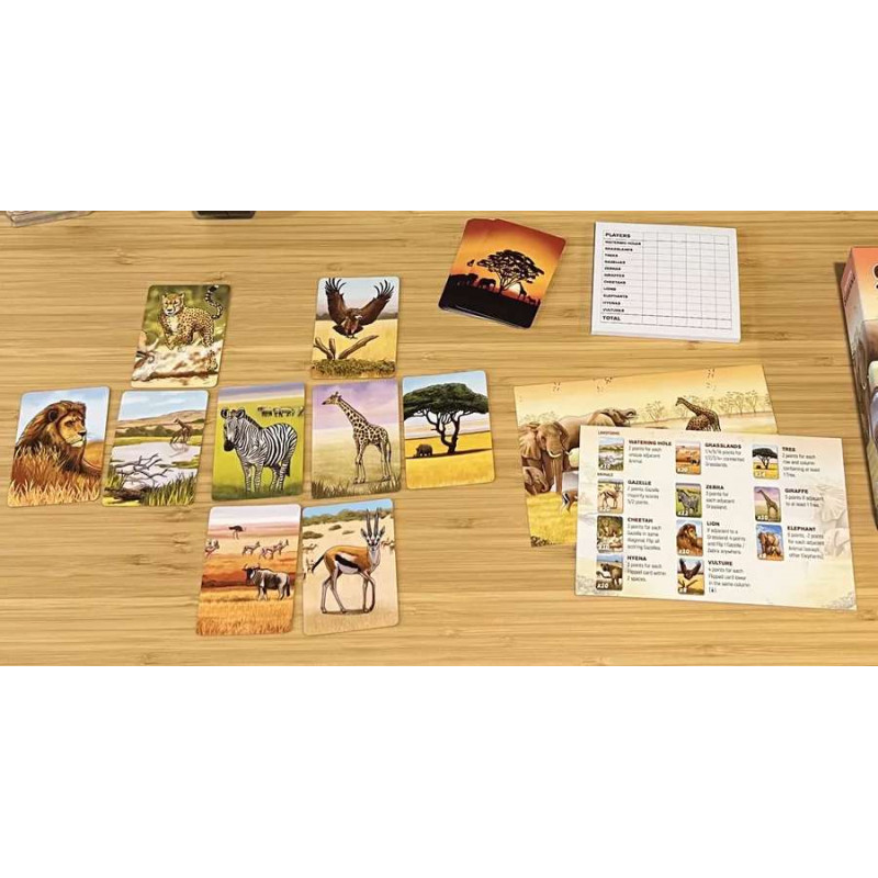 <p style="font-size:14px;color:#52473b;font-family:'Open Sans', 'Helvetica Neue', Helvetica, Arial, 'Lucida Grande', sans-serif;font-style:normal;font-weight:500;letter-spacing:normal;text-indent:0px;text-transform:none;word-spacing:0px;white-space:normal;background-color:#ffffff;">Be on the prowl in<span> </span><em><strong style="font-weight:bold;">Ecosystem: Savanna</strong></em>, a Serengeti-inspired card-drafting game. Players choose, pass, and arrange cards representing a diversity of organisms found in an African grassland, including zebras, elephants, cheetahs, and lions. Earn points by aligning herbivores with habitable landforms like watering holes or placing carnivores to devour nearby prey. Diversify your food web to maximize your bonuses. Each time you play, you build a one-of-a-kind ecosystem as you strive to balance the delicate connections between all living things.</p> <p style="font-size:14px;color:#52473b;font-family:'Open Sans', 'Helvetica Neue', Helvetica, Arial, 'Lucida Grande', sans-serif;font-style:normal;font-weight:500;letter-spacing:normal;text-indent:0px;text-transform:none;word-spacing:0px;white-space:normal;background-color:#ffffff;"><em>Ecosystem: Savanna</em><span> </span>is the third standalone game in the Ecosystem series, featuring a new lineup of organisms, including powerful scavengers.</p> <p style="font-size:14px;color:#52473b;font-family:'Open Sans', 'Helvetica Neue', Helvetica, Arial, 'Lucida Grande', sans-serif;font-style:normal;font-weight:500;letter-spacing:normal;text-indent:0px;text-transform:none;word-spacing:0px;white-space:normal;background-color:#ffffff;">Players take turns drafting organism cards and arranging them into a 4x5 "ecosystem" in front of them. Once all players have completed their personal grid of 20 cards, players score their ecosystems using the rules for each card type. Scoring rewards players for building cohesive food webs and exploring the diversity of the Savanna ecosystem. The player with the most points wins!</p> <p style="font-size:14px;color:#52473b;font-family:'Open Sans', 'Helvetica Neue', Helvetica, Arial, 'Lucida Grande', sans-serif;font-style:normal;font-weight:500;letter-spacing:normal;text-indent:0px;text-transform:none;word-spacing:0px;white-space:normal;background-color:#ffffff;">Includes rules for solo play.</p>