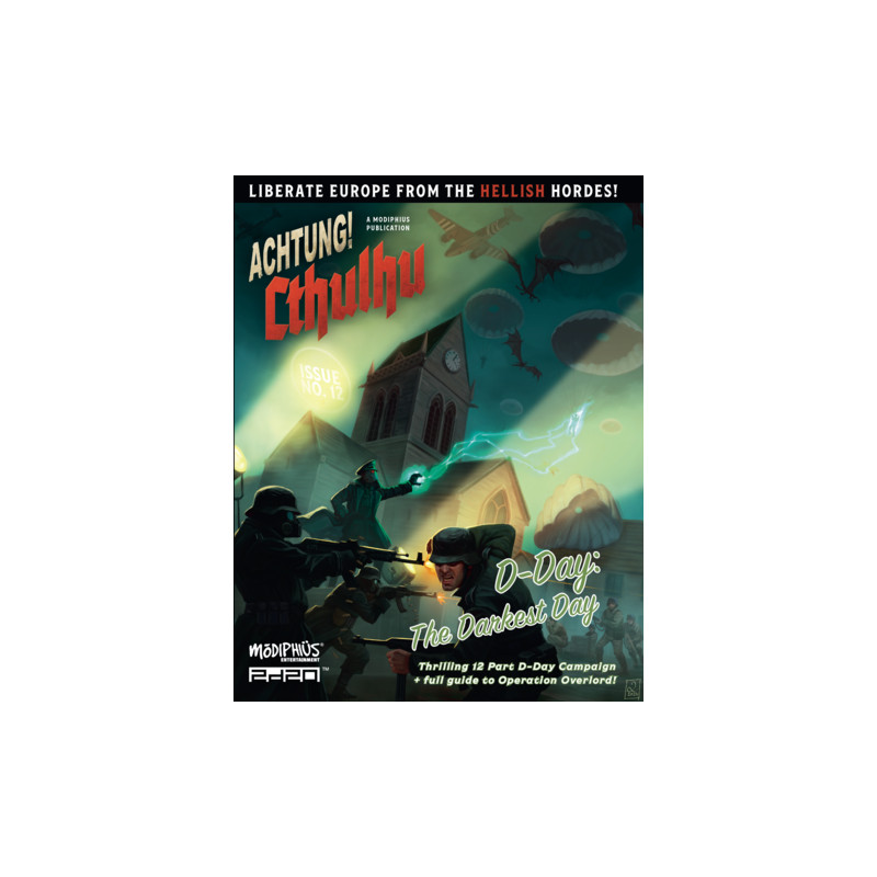 Inside this combined guide and campaign book, you’ll find everything you need to run D-Day missions and campaigns in the thrilling pulp world of Achtung! Cthulhu!