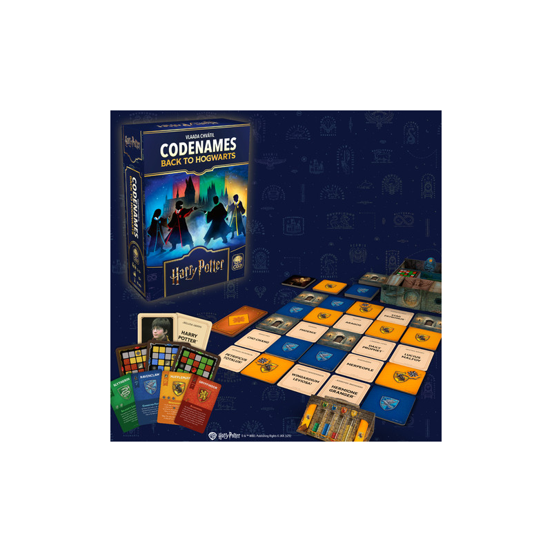 Codenames: Back to Hogwarts DEUTSCH ist ein brandneues Codenames-Erlebnis, in der Wizarding World. Schließt euch zusammen und spielt den geselligen Wortratespiel-Klassiker als eure Lieblingshäuser von Hogwarts. Nutzt die unterschiedlichen Fähigkeiten von Gryffindor, Ravenclaw, Hufflepuff und Slytherin, um eurem Haus einen Vorteil zu verschaffen.
