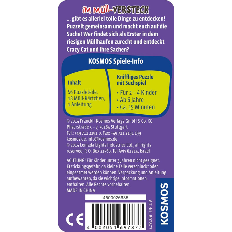 <ul class="a-unordered-list a-vertical a-spacing-mini" style="margin:0px 0px 0px 18px;color:#0f1111;padding:0px;font-family:'Amazon Ember', Arial, sans-serif;font-size:14px;font-style:normal;font-weight:400;letter-spacing:normal;text-indent:0px;text-transform:none;word-spacing:0px;white-space:normal;background-color:#ffffff;"> <li class="a-spacing-mini" style="list-style:disc;margin:0px;"><span class="a-list-item" style="color:#0f1111;">Wer findet sich als Erster im riesigen Müllhaufen zurecht?</span></li> <li class="a-spacing-mini" style="list-style:disc;margin:0px;"><span class="a-list-item" style="color:#0f1111;">Kniffliges Puzzle und Suchspiel</span></li> <li class="a-spacing-mini" style="list-style:disc;margin:0px;"><span class="a-list-item" style="color:#0f1111;">Spieldauer: 15 min</span></li> <li class="a-spacing-mini" style="list-style:disc;margin:0px;"><span class="a-list-item" style="color:#0f1111;">ab 6 Jahre</span></li> <li class="a-spacing-mini" style="list-style:disc;margin:0px;"><span class="a-list-item" style="color:#0f1111;"><span style="color:#333333;font-family:'Amazon Ember', Arial, sans-serif;font-size:14px;font-style:normal;font-weight:400;letter-spacing:normal;text-indent:0px;text-transform:none;word-spacing:0px;white-space:normal;background-color:#ffffff;float:none;">2 bis 4 Spieler</span></span></li> </ul>