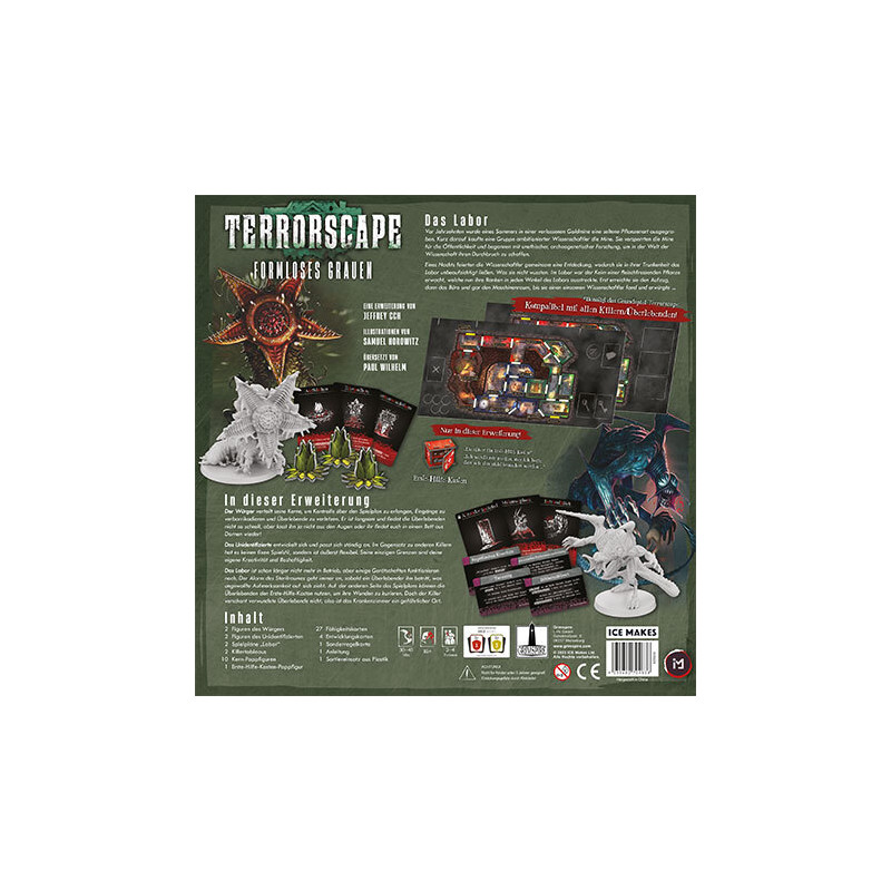 <h1 id="a1" style="line-height:20px;font-size:18pt;color:#000000;font-family:Verdana, Arial, sans;font-style:normal;letter-spacing:normal;text-indent:0px;text-transform:none;word-spacing:0px;white-space:normal;background-color:#ffffff;">Formloses Grauen - Erweiterung</h1> <p><span style="color:#000000;font-family:Verdana, Arial, sans;font-size:13.3333px;font-style:normal;font-weight:400;letter-spacing:normal;text-indent:0px;text-transform:none;word-spacing:0px;white-space:normal;background-color:#ffffff;float:none;"></span><br style="color:#000000;font-family:Verdana, Arial, sans;font-size:13.3333px;font-style:normal;font-weight:400;letter-spacing:normal;text-indent:0px;text-transform:none;word-spacing:0px;white-space:normal;background-color:#ffffff;" /><br style="color:#000000;font-family:Verdana, Arial, sans;font-size:13.3333px;font-style:normal;font-weight:400;letter-spacing:normal;text-indent:0px;text-transform:none;word-spacing:0px;white-space:normal;background-color:#ffffff;" /><span style="color:#000000;font-family:Verdana, Arial, sans;font-size:13.3333px;font-style:normal;font-weight:400;letter-spacing:normal;text-indent:0px;text-transform:none;word-spacing:0px;white-space:normal;background-color:#ffffff;float:none;">Terrorscape ist ein fesselndes, team-basiertes Horrorspiel für 2 bis 4 Personen. Ihr könnt die Rolle des Killers oder der Überlebenden einnehmen. Während des Spiels jagt der blutrünstige Killer einen der Überlebenden, während die Überlebenden ihr Bestes geben, um Gefahren auszuweichen, nach Ressourcen stöbern, fliehen oder einen Notruf absetzen.</span><br style="color:#000000;font-family:Verdana, Arial, sans;font-size:13.3333px;font-style:normal;font-weight:400;letter-spacing:normal;text-indent:0px;text-transform:none;word-spacing:0px;white-space:normal;background-color:#ffffff;" /><br style="color:#000000;font-family:Verdana, Arial, sans;font-size:13.3333px;font-style:normal;font-weight:400;letter-spacing:normal;text-indent:0px;text-transform:none;word-spacing:0px;white-space:normal;background-color:#ffffff;" /><span style="color:#000000;font-family:Verdana, Arial, sans;font-size:13.3333px;font-style:normal;font-weight:400;letter-spacing:normal;text-indent:0px;text-transform:none;word-spacing:0px;white-space:normal;background-color:#ffffff;float:none;">Auf dem Gelände einer Goldmine, in der in einem Sommer eine seltsame, uralte Pflanzenart ausgegraben wurde. Die Mine wurde an eine Forschungsgesellschaft verkauft, die das Gelände für die Öffentlichkeit abgesperrt hat. Hinter verschlossenen Türen ist ein Keimling langsam zu einer fleischfressenden Pflanze gewachsen.</span><br style="color:#000000;font-family:Verdana, Arial, sans;font-size:13.3333px;font-style:normal;font-weight:400;letter-spacing:normal;text-indent:0px;text-transform:none;word-spacing:0px;white-space:normal;background-color:#ffffff;" /><br style="color:#000000;font-family:Verdana, Arial, sans;font-size:13.3333px;font-style:normal;font-weight:400;letter-spacing:normal;text-indent:0px;text-transform:none;word-spacing:0px;white-space:normal;background-color:#ffffff;" /><span style="color:#000000;font-family:Verdana, Arial, sans;font-size:13.3333px;font-style:normal;font-weight:400;letter-spacing:normal;text-indent:0px;text-transform:none;word-spacing:0px;white-space:normal;background-color:#ffffff;float:none;">Mit dieser Erweiterung kommen die Überlebenden in ein mysteriöses Labor und müssen vor 2 neuen unnatürlichen Killern fliehen.</span><br style="color:#000000;font-family:Verdana, Arial, sans;font-size:13.3333px;font-style:normal;font-weight:400;letter-spacing:normal;text-indent:0px;text-transform:none;word-spacing:0px;white-space:normal;background-color:#ffffff;" /><br style="color:#000000;font-family:Verdana, Arial, sans;font-size:13.3333px;font-style:normal;font-weight:400;letter-spacing:normal;text-indent:0px;text-transform:none;word-spacing:0px;white-space:normal;background-color:#ffffff;" /><b style="color:#000000;font-family:Verdana, Arial, sans;font-size:13.3333px;font-style:normal;letter-spacing:normal;text-indent:0px;text-transform:none;word-spacing:0px;white-space:normal;background-color:#ffffff;">ACHTUNG: Zum Spielen wird das Grundspiel benötigt!</b></p> <p><b style="color:#000000;font-family:Verdana, Arial, sans;font-size:13.3333px;font-style:normal;letter-spacing:normal;text-indent:0px;text-transform:none;word-spacing:0px;white-space:normal;background-color:#ffffff;"><span style="color:#000000;font-family:Verdana, Arial, sans;font-size:13.3333px;font-style:normal;font-weight:400;letter-spacing:normal;text-indent:0px;text-transform:none;word-spacing:0px;white-space:normal;background-color:#ffffff;float:none;">ein Spiel für<span> </span></span><b style="color:#000000;font-family:Verdana, Arial, sans;font-size:13.3333px;font-style:normal;letter-spacing:normal;text-indent:0px;text-transform:none;word-spacing:0px;white-space:normal;background-color:#ffffff;">2 bis 4 Spieler</b><span style="color:#000000;font-family:Verdana, Arial, sans;font-size:13.3333px;font-style:normal;font-weight:400;letter-spacing:normal;text-indent:0px;text-transform:none;word-spacing:0px;white-space:normal;background-color:#ffffff;float:none;"><span> </span>im Alter von<span> </span></span><b style="color:#000000;font-family:Verdana, Arial, sans;font-size:13.3333px;font-style:normal;letter-spacing:normal;text-indent:0px;text-transform:none;word-spacing:0px;white-space:normal;background-color:#ffffff;">16 bis 100 Jahren</b></b></p>