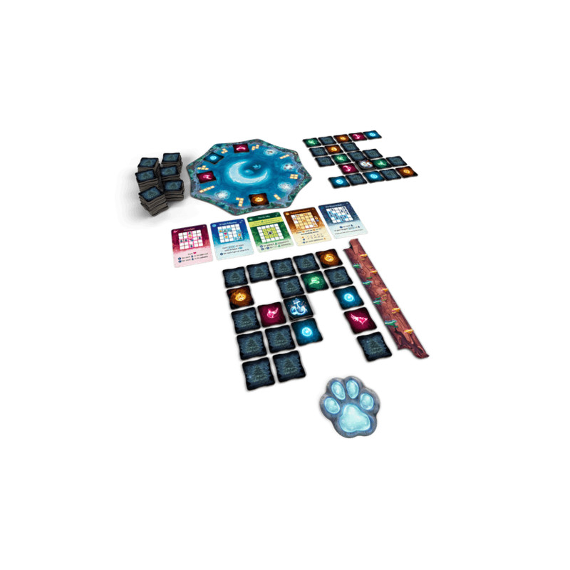 Familien und Freunde erforschen die Magie von Wispwood in diesem kompetitiven Legespiel für jedermann!