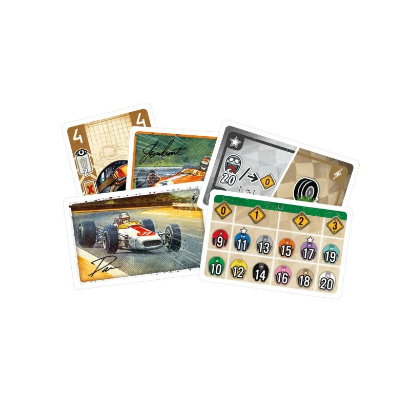 In dieser Erweiterung sind keine Rennwagen enthalten. Diese Erweiterung enthält Legendenkarten für ein Spiel mit bis zu 12 Rennwagen.