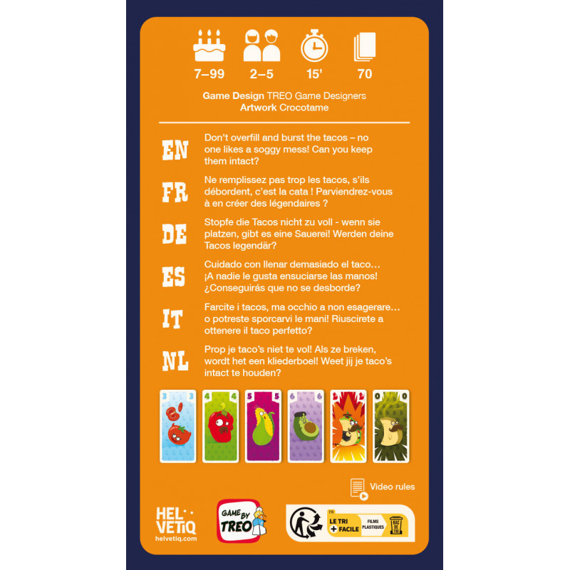 Das perfekte Spiel für jeden Taco-Abend: Füllt den Taco nach Lust und Laune, aber seid vorsichtig: Überfüllt ihn nicht, denn sonst platzt er und ihr erhaltet Strafpunkte!