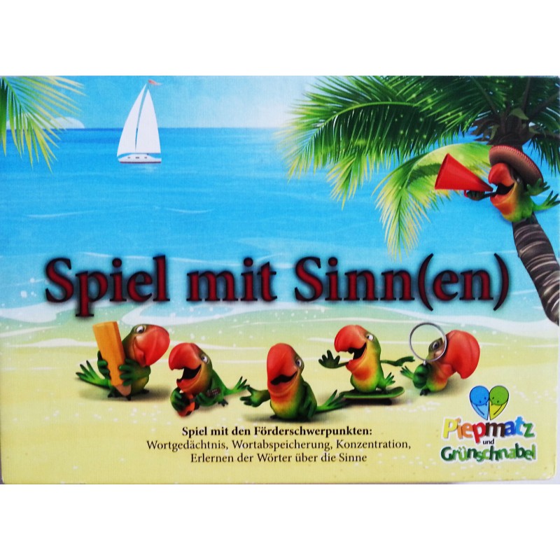 Spielregeln Der jüngste Spieler beginnt und legt beide Kartenstapel (Auftragskarten undGrundwortschatzkarten) verdeckt vor sich hin.Die Belohnungschips, sowie die Sanduhr nimmt sich der linke Spielnachbar. Wenn der Spieler, der am Zug und bereit ist, wird die Sanduhr umgedreht.Der Spieler nimmt zugleich je eine Karte von beiden Stapeln. Er dreht diese um und führt den Auftrag zum gezogenen Wort durch. Wenn er damit fertig ist, legt er die Auftragskarte beiseite und zieht eine weitere. Dies macht er so lange bis die Sanduhr abgelaufen ist. Das Wort bleibt dabei immer das Gleiche. Während des Spieles kontrollieren alle Mitspieler, ob der Spieler die Aufgaben richtig löst.Eine Auftragskarte, die nicht fertig ausgeführt wurde, wird nicht bewertet. Danach werden die jeweiligen Punkte, die sich rechts unten bei der Schatzkiste auf den Auftragskarten befinden, zusammengezählt und durch Belohnungschips getauscht. Alle gezogenen Karten werden wieder unter den jeweiligen Kartenstapel gelegt und mit der Sanduhr im Uhrzeigersinn an den nächsten Spieler weiter gereicht.Kann ein Auftrag auch nach langem Überlegen nicht ausgeführt werden, darf die Karte zurückgelegt und eine neue Auftragskarte gezogen werden. Ende des Spieles Nach vier Runden werden die Punkte der Belohnungschips zusammengezählt. Der Spieler mit den meisten Punkten gewinnt. Wissenswertes zu den Auftragskarten: -Klatsche das Wort in Silben: Die Kontrolle der richtigen Silbenanzahl, befindet sich auf der jeweiligen Wortkarte links unten. (1 – 3 Silben) -Baue das Wort mit Plastilin: Jeder Buchstabe des gezogenen Wortes wird mit Hilfe von Plastilin geformt und auf dem Tisch dargestellt. -Finde einen Gegenstand im Raum mit dem gleichen Anfangsbuchstaben vom gezogenen Wort: z.B.: gezogenes Wort ist „schnell“ – im Raum befinden sich „Schuhe“ – Beide Wörter beginnen mit „s“. -Finde einen Gegenstand im Raum mit den zwei gleichen Anfangsbuchstaben vom gezogenen Wort: z.B. gezogenes Wort ist „Baum“ – im Raum befindet sich ein „Ball“ – Beide Wörter beginnen mit „Ba“. -Lautiere das Wort vorwärts bzw. Lautiere das Wort rückwärts: Die Buchstaben des gezogenen Wortes werden nicht buchstabiert („be“, „ef“, „el“), sondern mit dem entsprechenden Laut („b“, „e“, „l“) gesprochen. Der Spieler darf entscheiden, ob er die Karte dabei ansehen möchte. Dafür gibt es jedoch einen Punkt Abzug. -Buchstabiere das Wort einmal vorwärts und rückwärts: Die Buchstaben des gezogenen Wortes werden buchstabiert („be“, „ef“, „el“). Der Spieler darf entscheiden, ob er die Karte dabei ansehen möchte. Dafür gibt es jedoch einen Punkt Abzug. -Sprich das Wort einmal mit hoher und einmal mit tiefer Stimme aus: Hierbei wird die Stimmlage bei der Aussprache dementsprechend verändert. -Sprich das Wort einmal traurig und einmal fröhlich aus: Dabei wird die Mimik des Gesichtes dementsprechend verändert. -Finde passende Reimwörter: Hierbei soll ein Reimwort gefunden werden. Z.B.: gezogenes Wort „muss“ – passendes Reimwort ist „Kuss“. Kann ein Auftrag auch nach langem Überlegen nicht ausgeführt werden, darf die Karte zurückgelegt und eine neue Wortkarte gezogen werden. -Schreibe das Wort dreimal auf: Das Wort wird ohne Abschreiben auf das vorbereitete Blatt Papier dreimal aufgeschrieben. -Schreibe das Wort in der Luft oder auf den Rücken eines anderen Spielers: Das gezogene Wort wird mit dem Finger am Rücken eines Mitspielers oder in der Luft geschrieben. Dabei muss es nicht erkannt werden. -Schreibe das Wort auf und baue es ab und auf:z.B.: „Haus“HHaHauHausHauHaH -Schreibe das Wort rückwärts auf: z.B.: gezogenes Wort „noch“ - aufgeschriebenes Wort „hcon“. -Pantomime oder das Wort umschreiben: Wenn die Auftragskarte mit dem Papagei auf dem Skateboard kommt, muss ein neues Wort gezogen werden. Nur der Spieler, der am Zug ist, darf das neue Wort sehen. Hierbei muss das Wort pantomimisch dargestellt bzw. umschrieben werden. (Pantomime bedeutet, den Mitspielern etwas zu erklären, ohne dazu seine Sprache zu gebrauchen. Es muss also ausschließlich mittels Bewegungen, Gesten, Gesichtsausdrücke etc. geschehen. Beim Umschreiben muss das gesuchte Wort erklärt werden, ohne es auszusprechen. Z.B: „warm“ – das Gegenteil „kalt“). Kann ein Auftrag auch nach langem Überlegen nicht ausgeführt werden, darf die Karte zurückgelegt und eine neue Auftragskarte gezogen werden. Diese Karte wird nicht bewertet. Die Mitspieler müssen das Wort erkennen bzw. erraten können. Sobald jemand aus der Gruppe das Wort erkennt, darf der Spieler, der am Zug ist, die nächste Karte vom Grundwortschatzkartenstapel und eine vom Auftragskartenstapel ziehen.| Sprache | Deutsch |