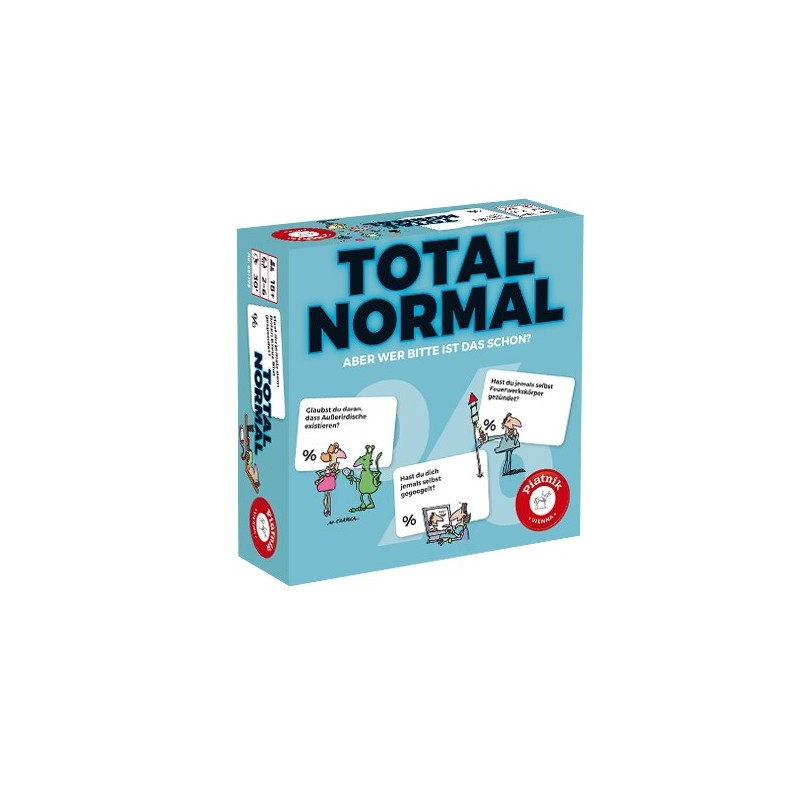 „Glaubst du an die Existenz von Außerirdischen?, „Hast du jemals einen Liebesbrief geschrieben? oder „Bist du jemals bei der Arbeit eingeschlafen?: Die Fragen von Total normal haben es in sich – und die Antworten ebenso! Denn in diesem kurzweiligen Spiel geht es nicht nur um persönliche Erfahrungen und Erlebnisse, auf die wahrheitsgemäß reagiert werden soll. Ebenso müssen die Mitspieler eingeschätzt und ihre Antworten erraten werden. Je nachdem, wie gut sich die Spieler kennen, ist das bisweilen ganz schön schwierig. Zu guter Letzt entscheiden sich die zwei bis sechs Spieler auch noch dafür, wie viel Prozent der deutschsprachigen Bevölkerung die jeweilige Frage mit Ja beantworten –überraschende Ergebnisse sind dabei garantiert! Das lustige Fragespiel ist für Spieler ab 18 Jahren konzipiert und basiert auf öffentlich zugänglichen Statistiken und intensiven Internetrecherchen im deutschsprachigen Raum. Während sich manche Antworten mit etwas Nachdenken und logischen Schlussfolgerungen noch erschließen lassen, gibt es immer wieder Resultate, mit denen keiner gerechnet hat.| Sprache | Deutsch |