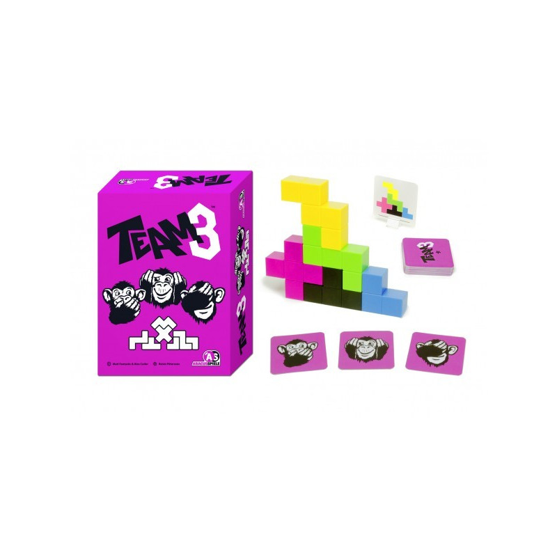 In TEAM3 muss jeweils ein Team aus 3 Spielern zusammen ein Gebäude bauen. Doch wie soll das funktionieren, wenn: der Architekt, der als Einziger den Bauplan kennt, nichts sagen, darf der Bauleiter, der beschreiben soll, was gemacht werden muss, nur einen wild gestikulierenden Architekten sieht und der Bauarbeiter, der das Gebäude schließlich bauen soll, gar nichts sehen kann? Die Antwort: Mit Teamwork, Chaos und jeder Menge Spaß! TEAM3 kann kooperativ oder in 2 Teams gegeneinander gespielt werden und ist in 2 Versionen erhältlich: Grün und Pink. Für noch mehr Abwechslung enthält jede Version zusätzlich eine eigene Mini-Erweiterung. Und wer beide Versionen kombiniert, kann sogar mit bis zu 12 Spielern spielen.| Sprache | Deutsch |