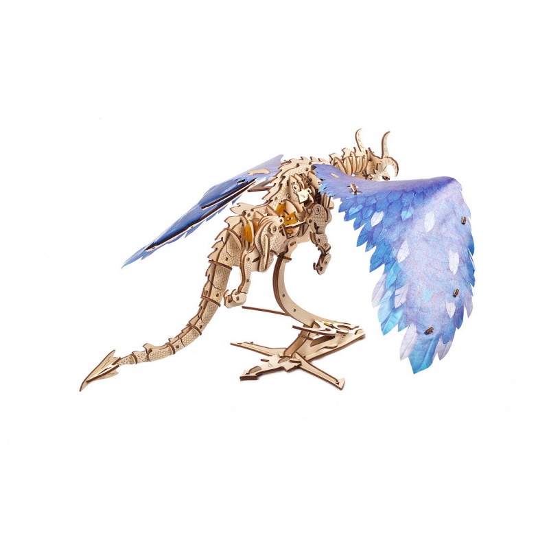 <div class="sizes"> <p>Modellgröße: 53*48.5*29 cm<br />Anzahl der Bauteile: 320<br />Aufbauzeit: 6 Std.<br />Grad: <a target="_blank" href="https://ugearsmodels.com/de/catalogue/mechanical-models/average-complexity/">Mittel</a></p> <p></p> <p>Willkommen beim Hort eines weisen und cleveren Ungeheuers, das zahllose Schätze bewacht, die es nur dem offenbart, der mutig genug ist, sich seinem mechanischen Zauber zu stellen! Wie sie sehen, fordert der wunderbare Sturmdrache aus der Roboter-Kollektion von Ugears Ihre Cleverness und Ihre Fähigkeiten heraus, um ein neues Abenteuer der Mechanik-Modelle zu beginnen.</p> <p>Das DIY-Holzpuzzle Sturmdrache ist ein klassisches sagenhaftes Reptil, die Verkörperung uralter Macht und Stärke, aus Holz und animiert durch die Hexerei der Ingenieure von Ugears.</p> </div>Dank seines offenen Designs dieses 3D-Puzzles können Sie das Herz - den Gummimotor - Ihres wunderbaren neuen Haustiers schlagen sehen. Vorne an seiner Brust befindet sich ein Schlüssel zum Aufziehen. Halten Sie zum Aufziehen den Körper des Drachen fest und drehen Sie den Schlüssel im Uhrzeigersinn. Lösen Sie den Motor, indem Sie den Starthebel ziehen. Und dann beginnt der Zauber: die Arme, die Beine, sogar der Körper des Holz-Drachen beginnen sich zu bewegen. Selbstverständlich setzen sich auch die beiden kräftigen und herrlichen Flügel in Bewegung. Das ist das ganz besondere Merkmal Ihres Ugears-Drachen: Die Knochen der Flügel sind aus Holz, aber der Rest besteht aus Papier in herrlichem Feder-Design. Das weichere und flexible Material verleiht dem Flug ein ausgesprochen realistisches Aussehen und lässt Raum für Ihre eigenen Ideen.